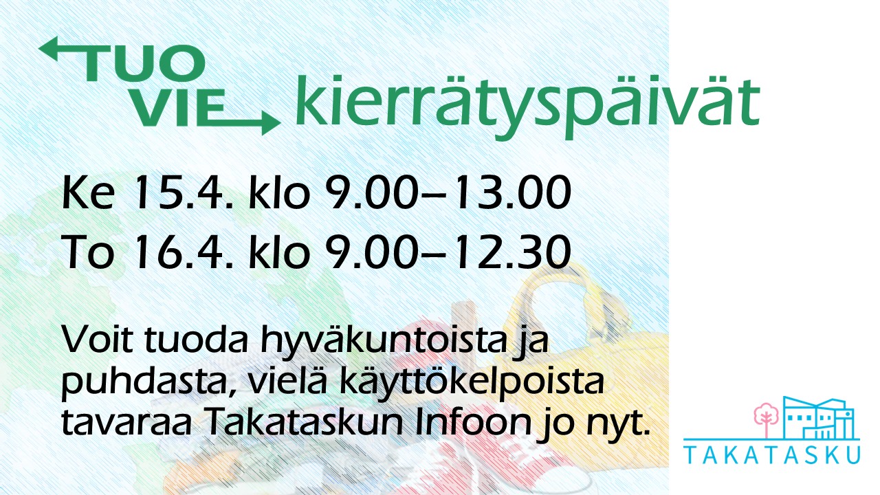 Tuo ja vie -päivät tulossa 15.-16.4.